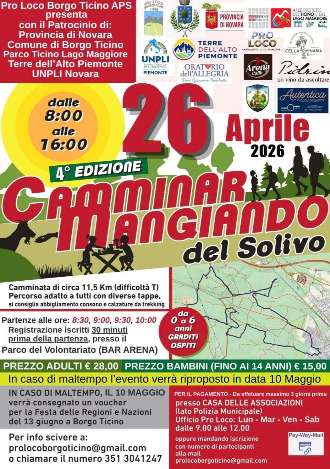 Domenica 26 aprile 2026 sarà una giornata ricca di appuntamenti a Casalino, tra convivialità, tradizione e scoperta del patrimonio locale. Presso il centro “6 Serie di Impronte” (Via Curino 1/a) si terrà la Festa di primavera: al mattino è in programma una passeggiata nelle campagne casalinesi in collaborazione con il gruppo “Golden Retriever Novara e Provincia”. A seguire, spazio al gusto: dalle ore 12 pranzo da asporto e dalle 12.30 servizio al tavolo con un menù tipico. Durante tutta la giornata sarà attivo anche il servizio bar. Nel pomeriggio, dalle ore 15, è previsto un torneo di briscola. Sempre domenica 26 aprile spazio anche alla cultura con “Piccoli tesori di casa nostra”: apertura straordinaria della Chiesa di San Pietro, del Castello di Casalino e della “Parete dei Santi” nella Cappella dell’Annunziata, visitabili esclusivamente con guida. Le visite guidate gratuite partiranno dall’ufficio turistico (Parco di San Pietro, Via Prealba) alle ore 10.15, 14.15 e 16. L’apertura dei siti sarà dalle 10 alle 12 e dalle 14 alle 17.45.