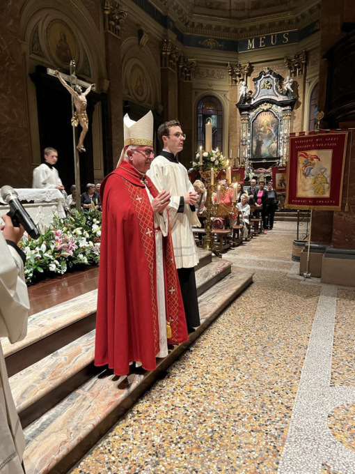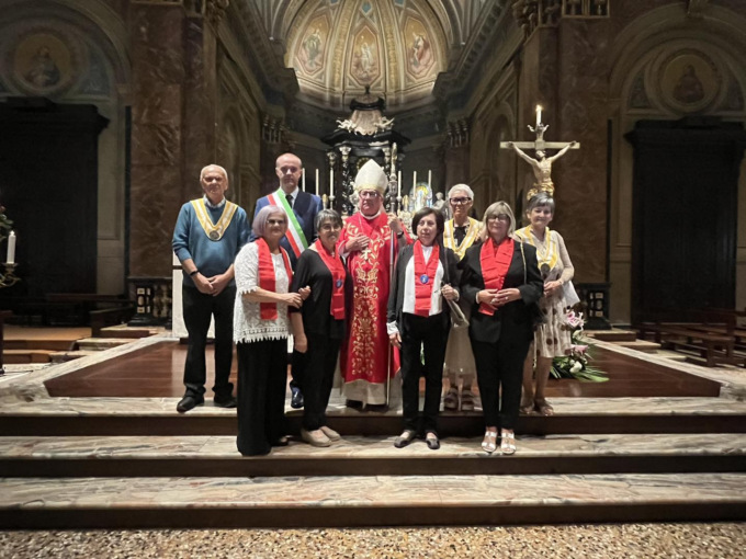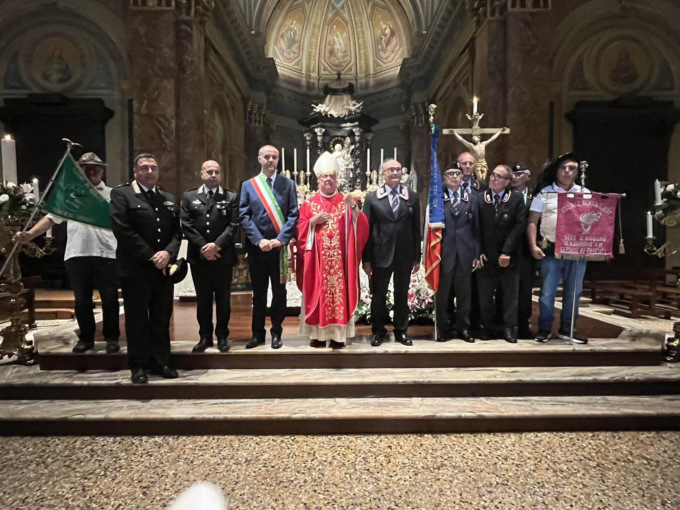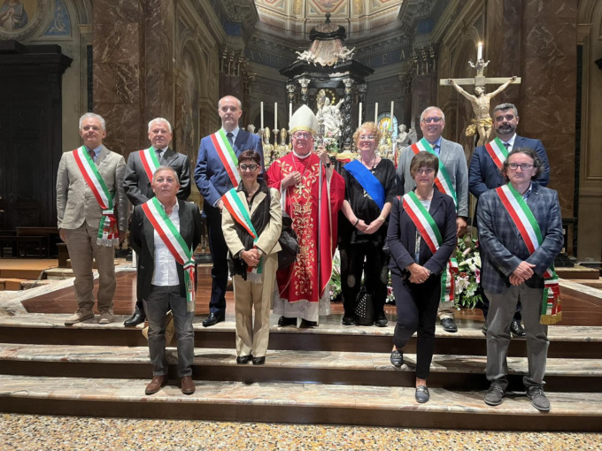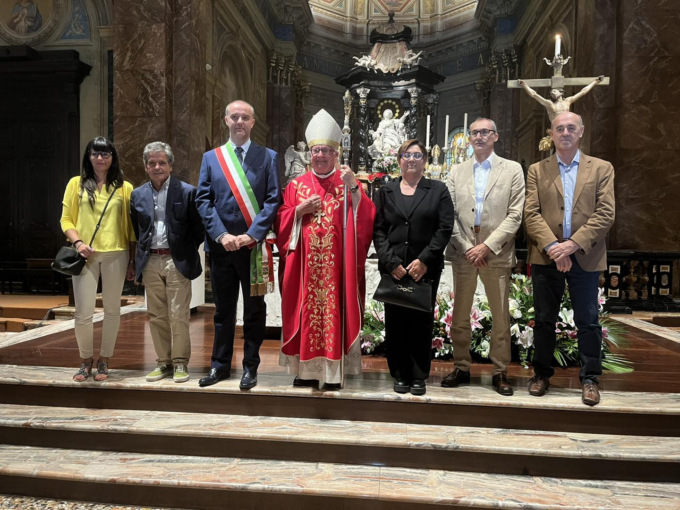 La Città di Trecate e i fedeli hanno reso omaggio nella mattinata dello scorso 17 settembre, ai santi patroni durante la messa solenne delle 11 presieduta da monsignor Giovanni Ricchiuti. La cerimonia religiosa, coordinata dalla Consulta dei Santi Patroni e animata dalla Schola cantorum “San Gregorio Magno” e dal coro “Don Gambino”, ha visto la presenza di numerose autorità civili (numerosi i sindaci e i rappresentanti dei Comuni del Novarese e della Provincia di Novara) e militari del territorio. Per l’Amministrazione comunale ha presenziato il sindaco Federico Binatti con gli assessori Antonio Baraggini, Rosa Criscuolo e Patrizia Dattrino e i consiglieri Giuseppe Acciardi, Mauro Bricco, Michela Cigolini, Emanuela Padula e Vincenzo Salerno: insieme, al termine della messa, sono saluti sugli Scuroli con i membri delle Confraternite e delle associazioni trecatesi e hanno quindi partecipato al rinfresco offerto dalla Consulta con la collaborazione del Gruppo Alpini A. Geddo.