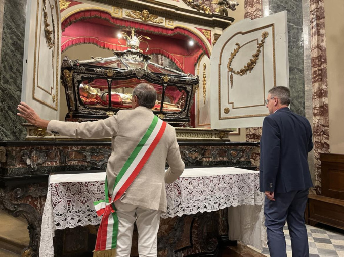 Dopo le benedizione e un breve intervento di monsignor Ricchiuti, il presidente della Consulta Giovanni Zanotti Fragonara e il vicesindaco, hanno aperto insieme la teca delle reliquie guidando i fedeli nella salita agli Scuroli per rendere omaggio ai patroni.